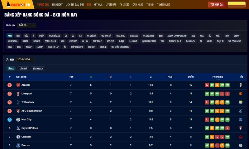 Thời gian gần đây, mình tìm ra một trang web cực kỳ chất lượng – Ra Khơi TV. Đây không chỉ là nơi xem highlight hay tin tức, mà còn là địa chỉ cập nhật bảng xếp hạng bóng đá Ngoại hạng Anh nhanh, chuẩn và trực quan nhất mà mình từng biết. Bài viết này mình muốn chia sẻ chi tiết với anh em vì sao Ra Khơi TV đang được xem là “công cụ số 1” cho fan Ngoại hạng Anh chân chính.