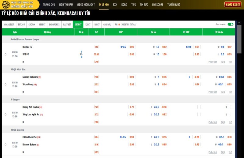 • So sánh tỷ lệ kèo giữa nhiều nhà cái trên Socolive.TV để tìm giá trị tốt nhất.